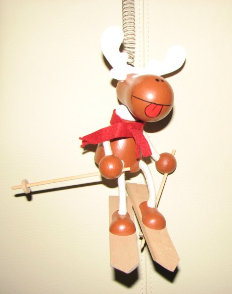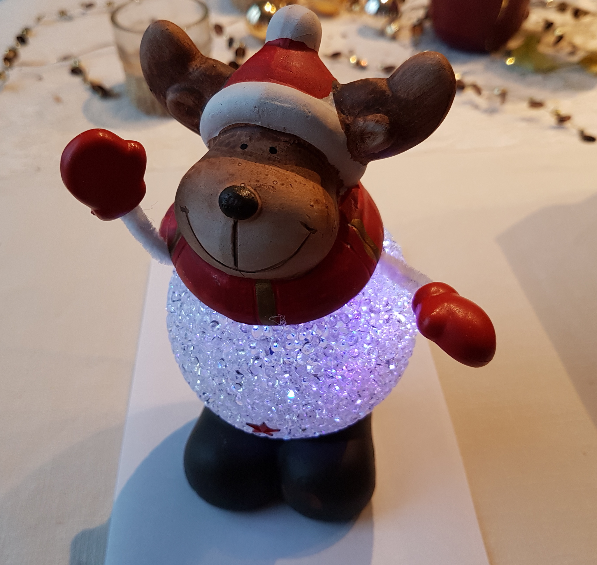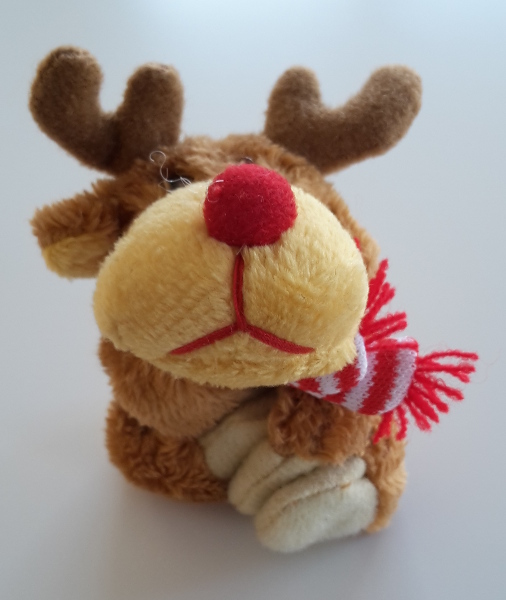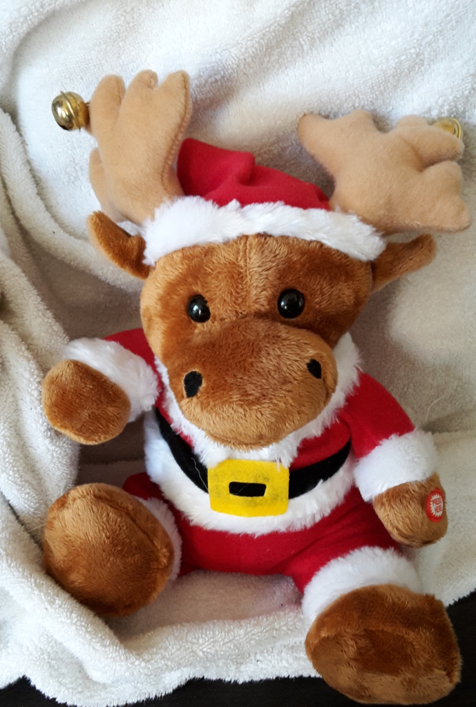 Santa-Elch der zur eigenen Musik leicht nervös zappelt und sich damit gern vom Tisch vibriert |