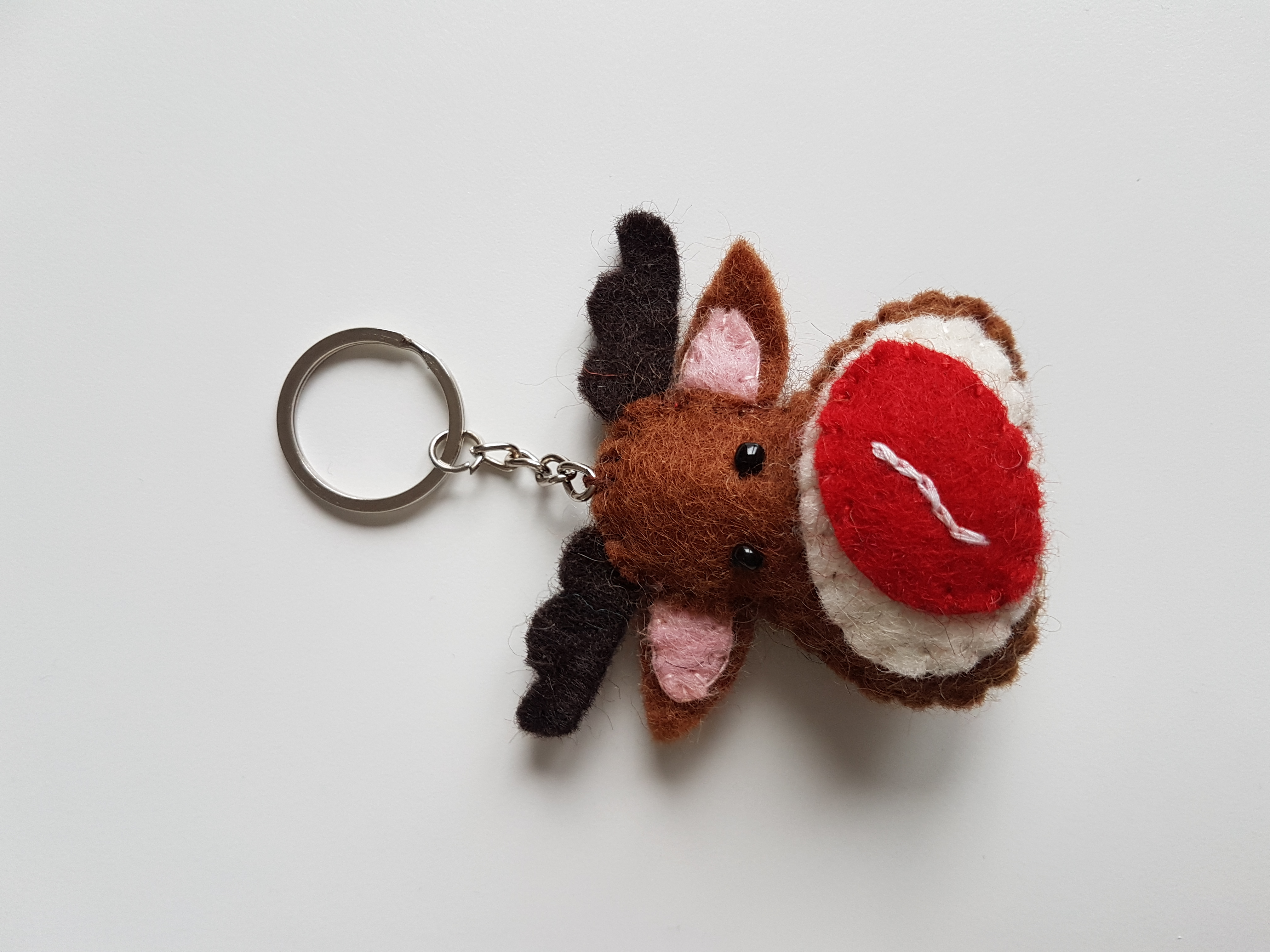 Ein flauschiger Schlüsselanhänger mit einem Weihnatselch |