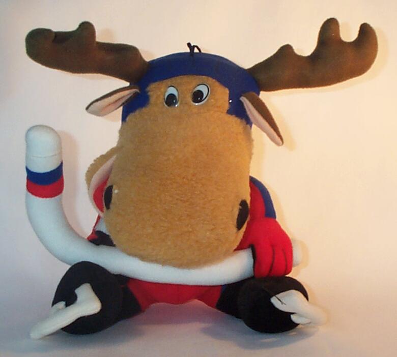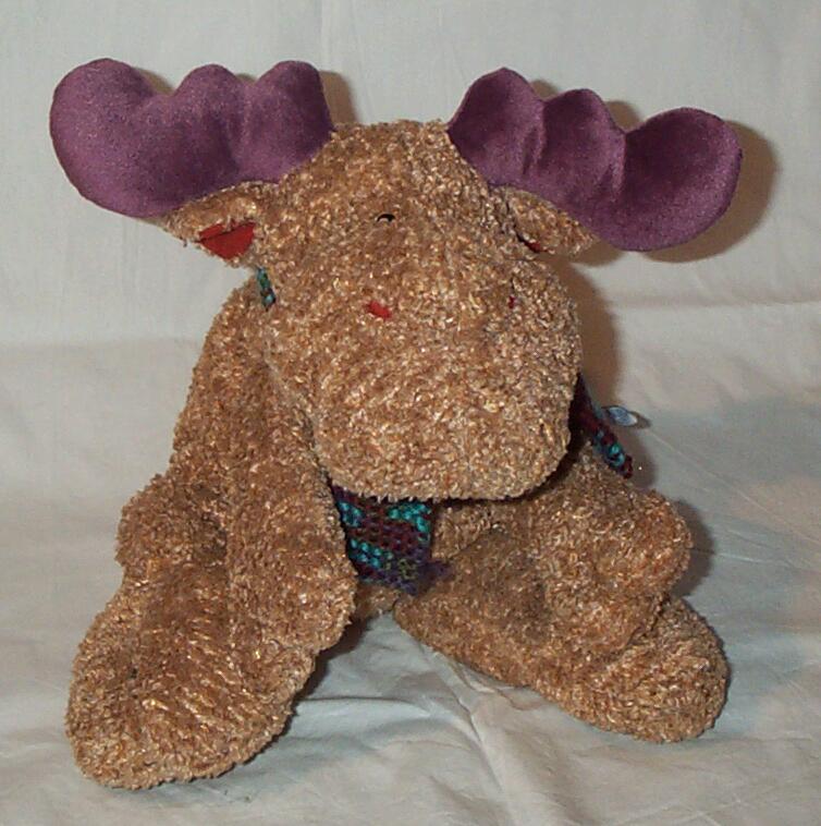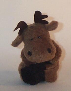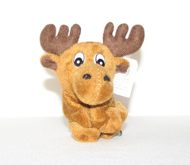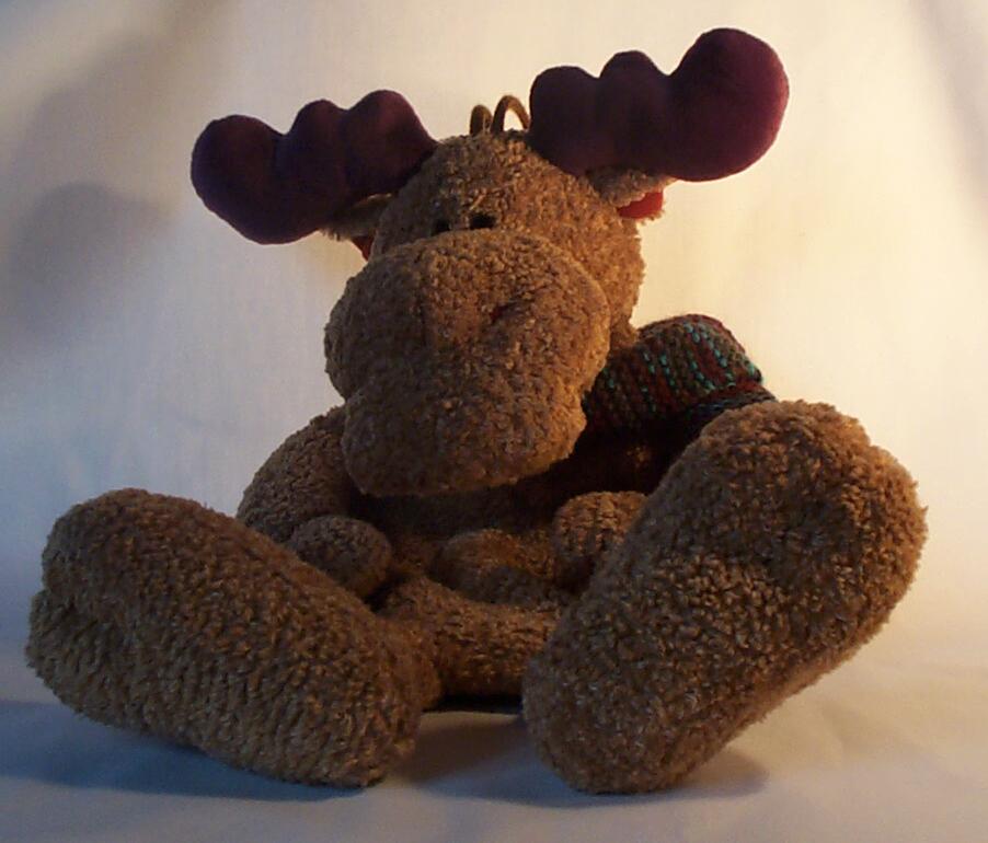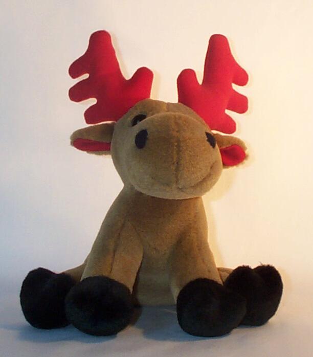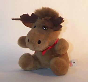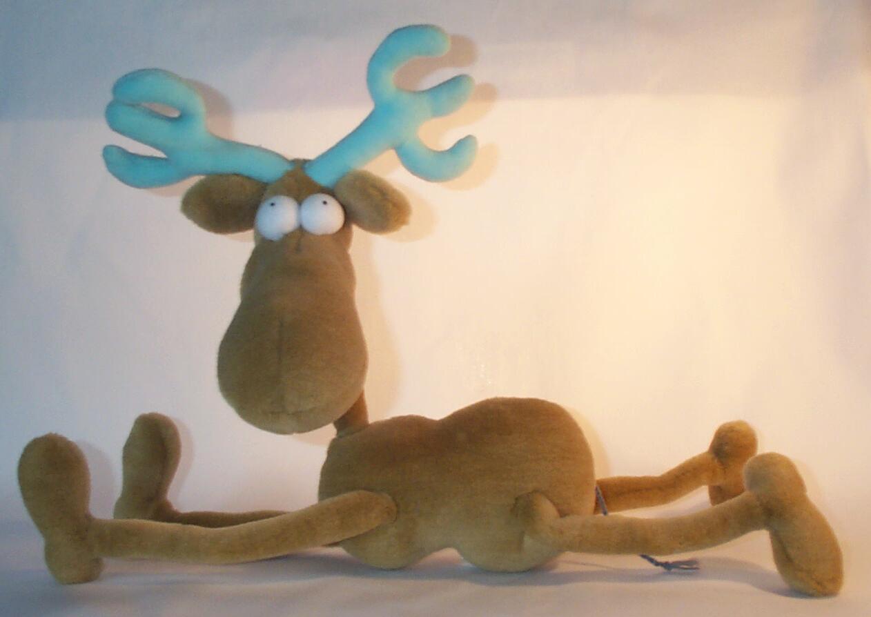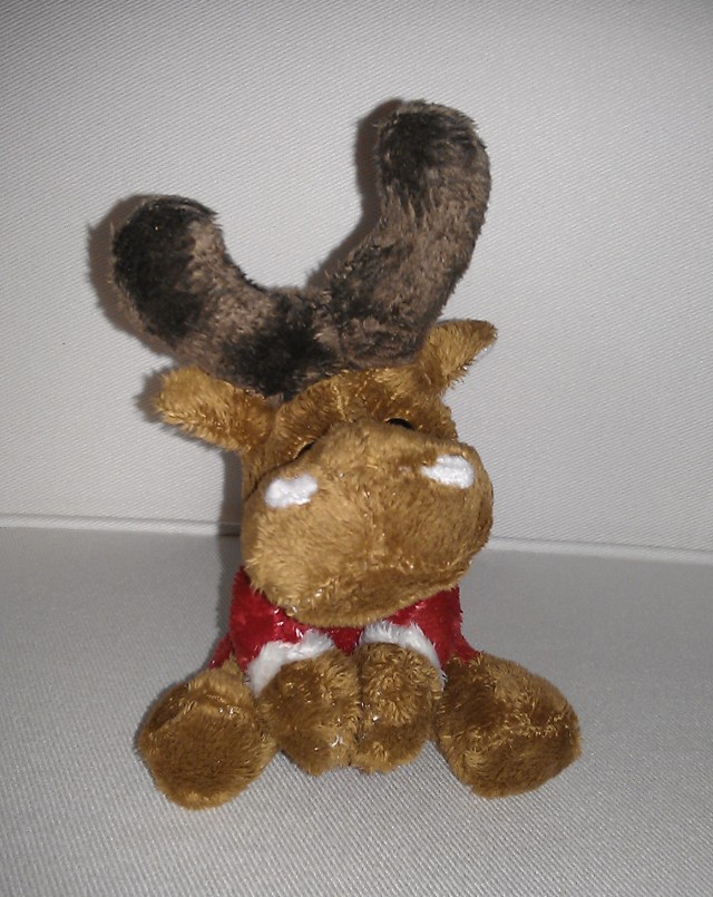 Sitzender Plüsch-Elch mit lustig strubeligen Haaren |