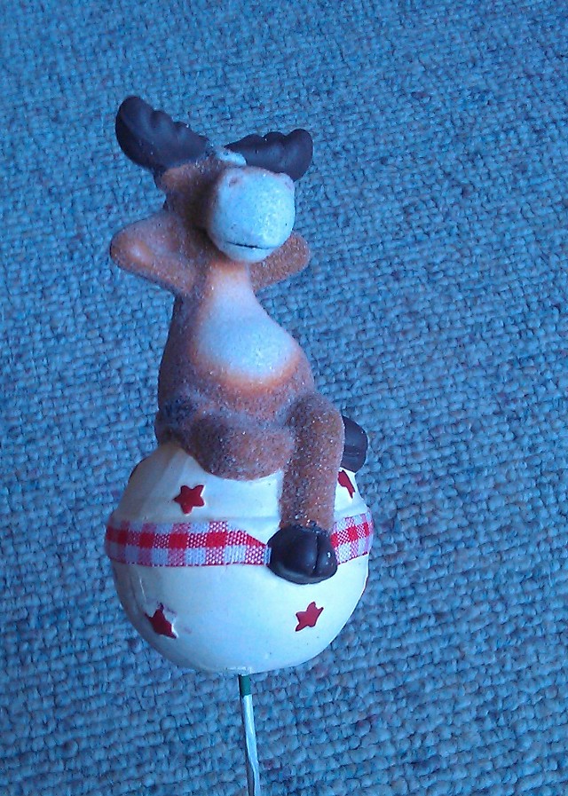 Entspannter Elch auf einer Stange, kann in einen Blumentopf gesteckt werden und verschönert so jedes Gewächs... |