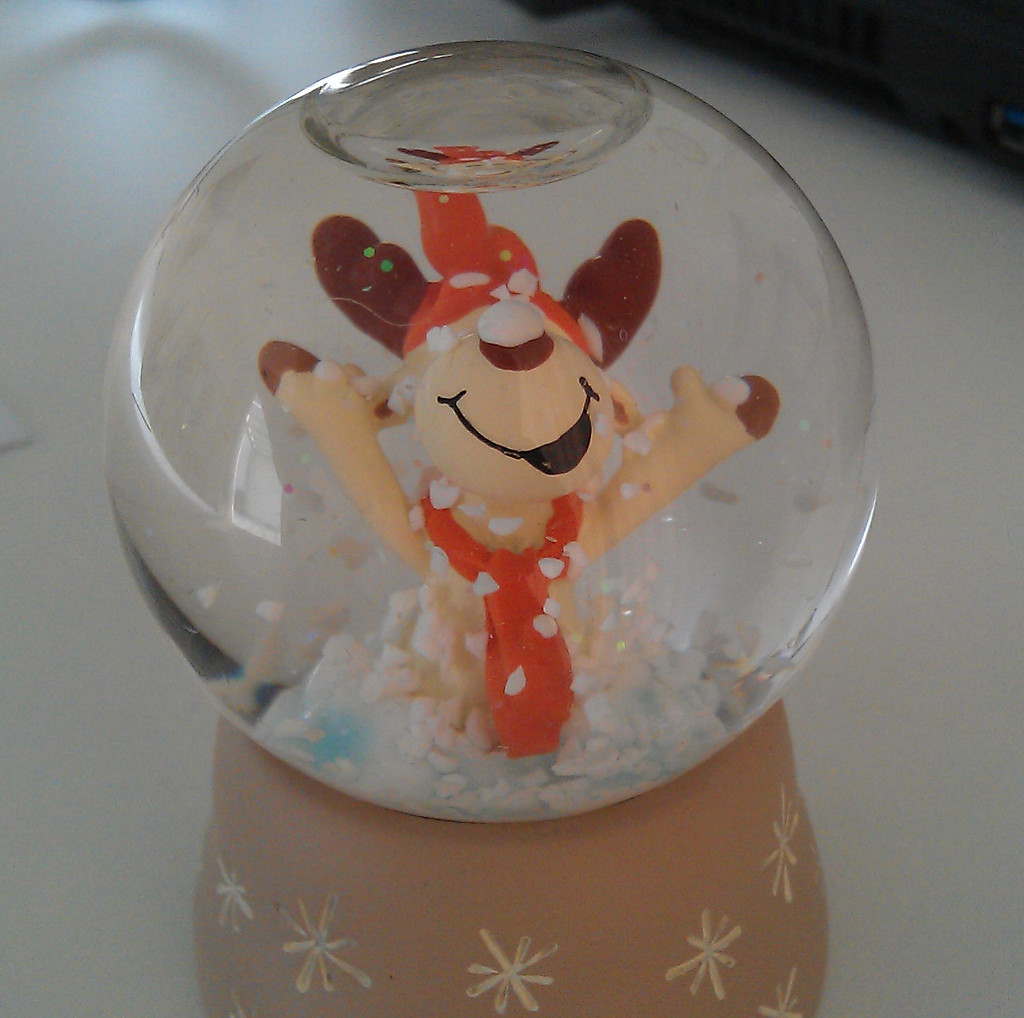 Glaskugel-Elch der sich mega über den Schnee freut |