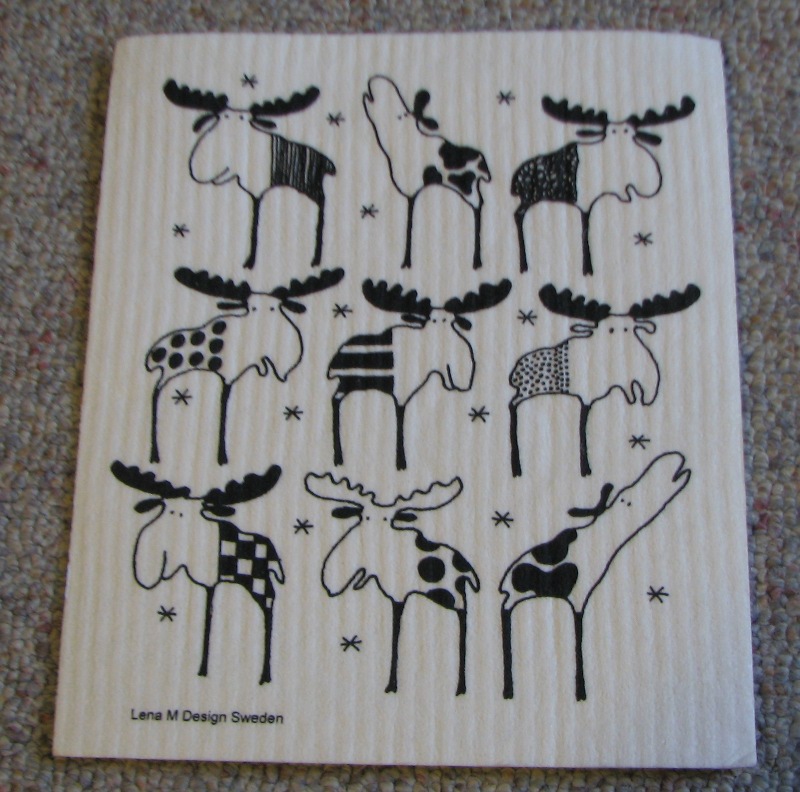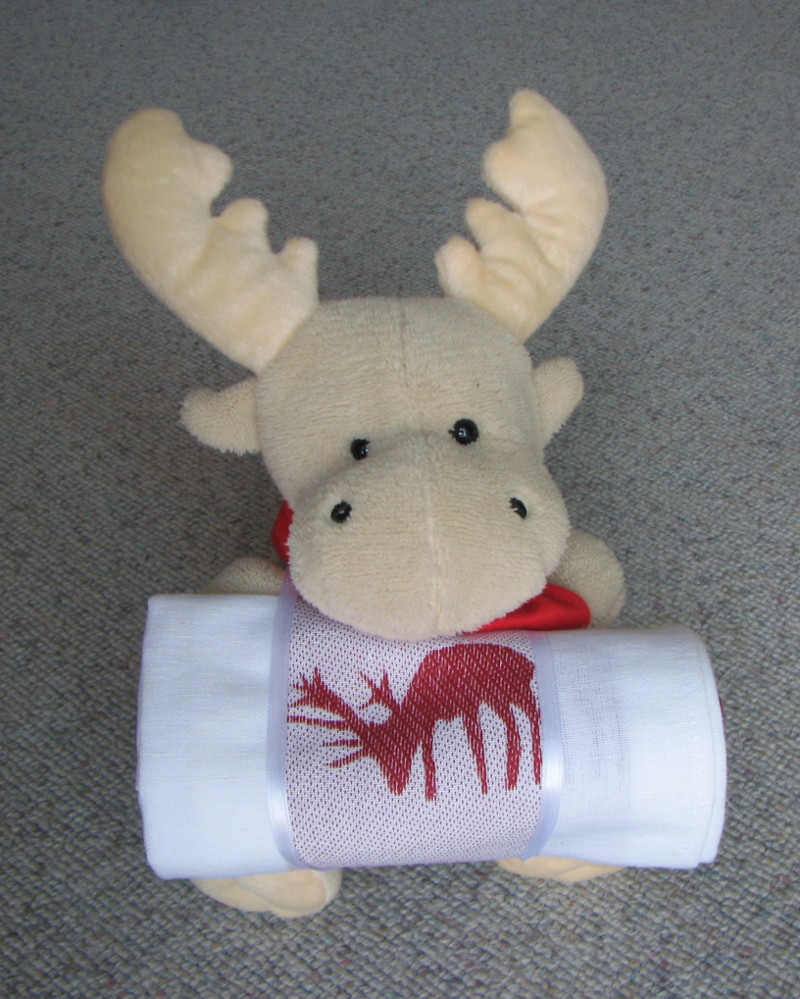 Schnuckeliger Plüsch-Elch mit einem Tuch zum Geschirr-Trocknen |