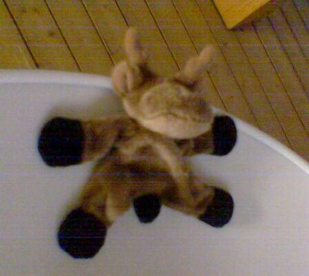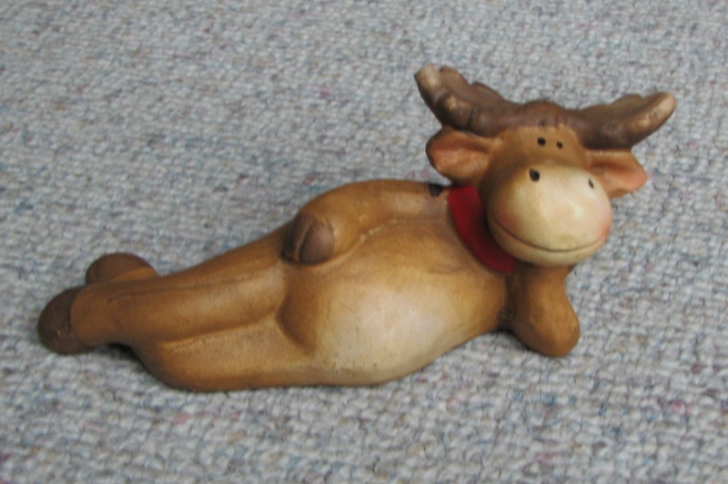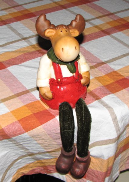 Dieser Elch macht mich reich! Er steht darum auch sehr zentral im Wohnzimmer. Hoffentlich werfen viele Gäste ihr Kleingeld ein. - Ist der Elch voll, zieht man am Schwanz und dann scheisst er das Vermögen aus! |