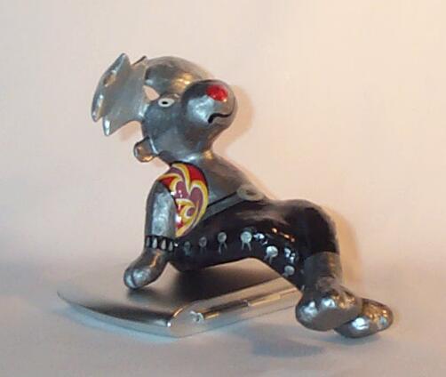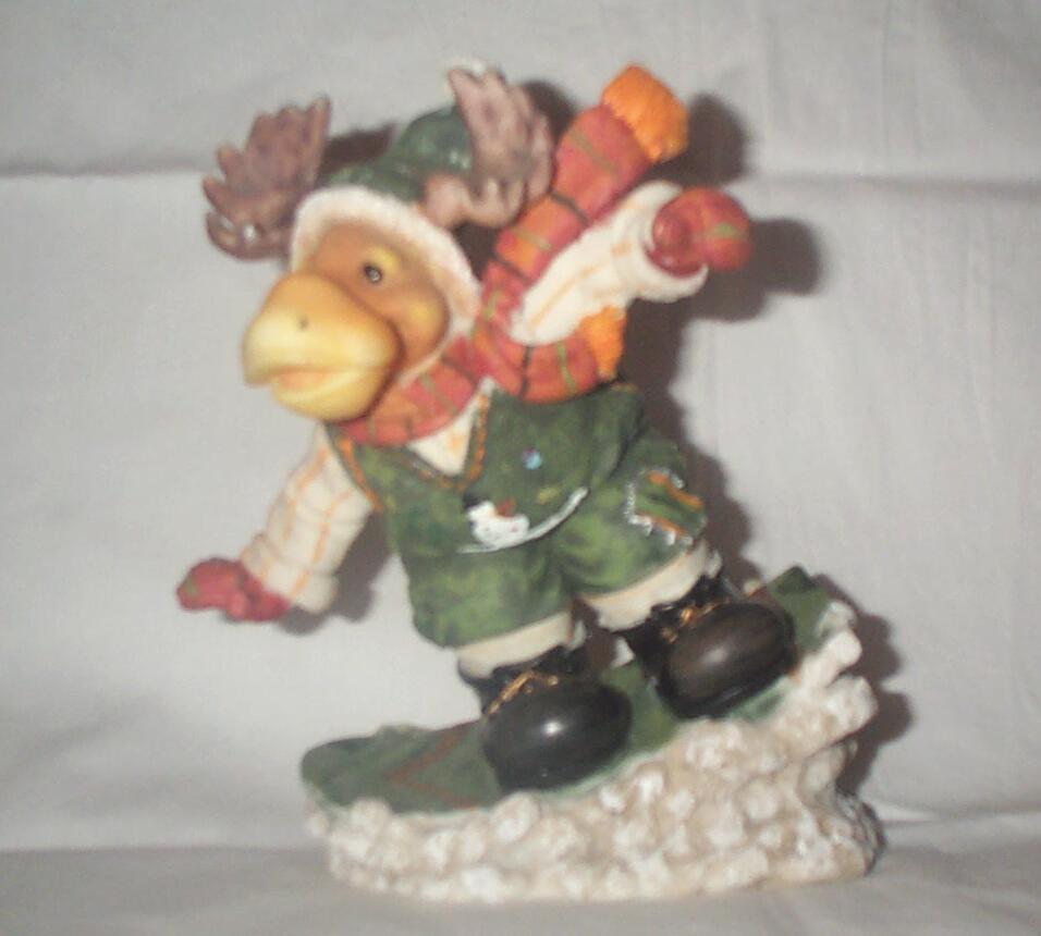 Elch aus Gips in Winterkleider und auf Schlittschuhen, geeignet als Buch-Halter |