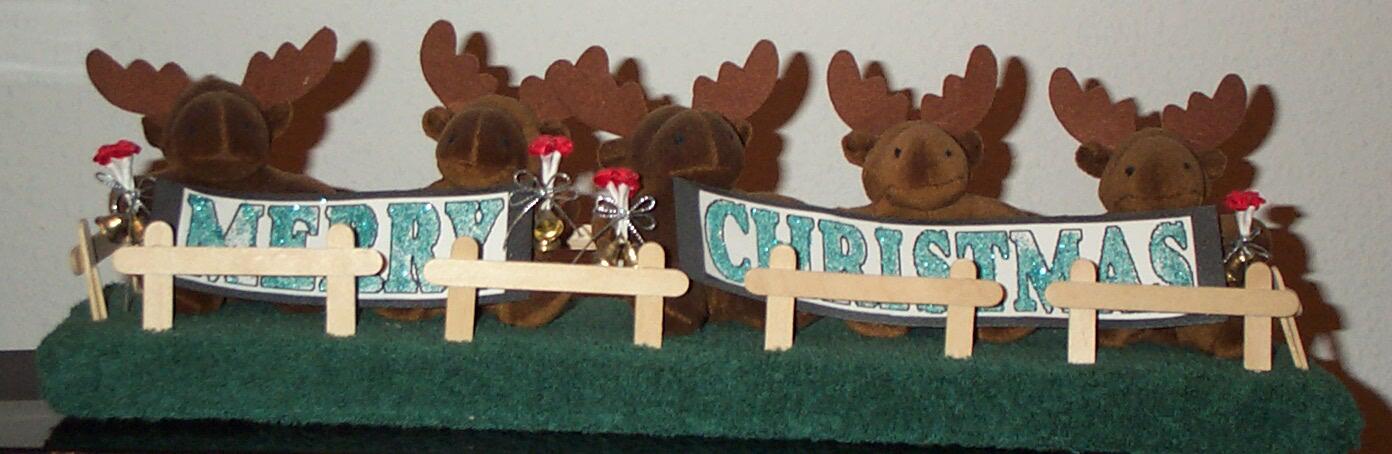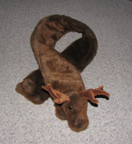 Elch mit roter Nase und weiss-rotem Schal. Statt Rudolf das Rentier, jetzt halt Rudolf der Elch... |