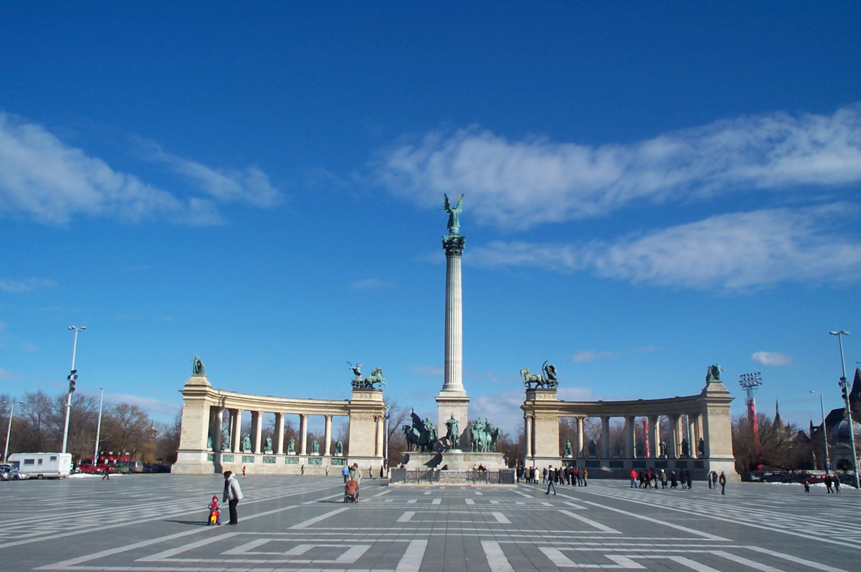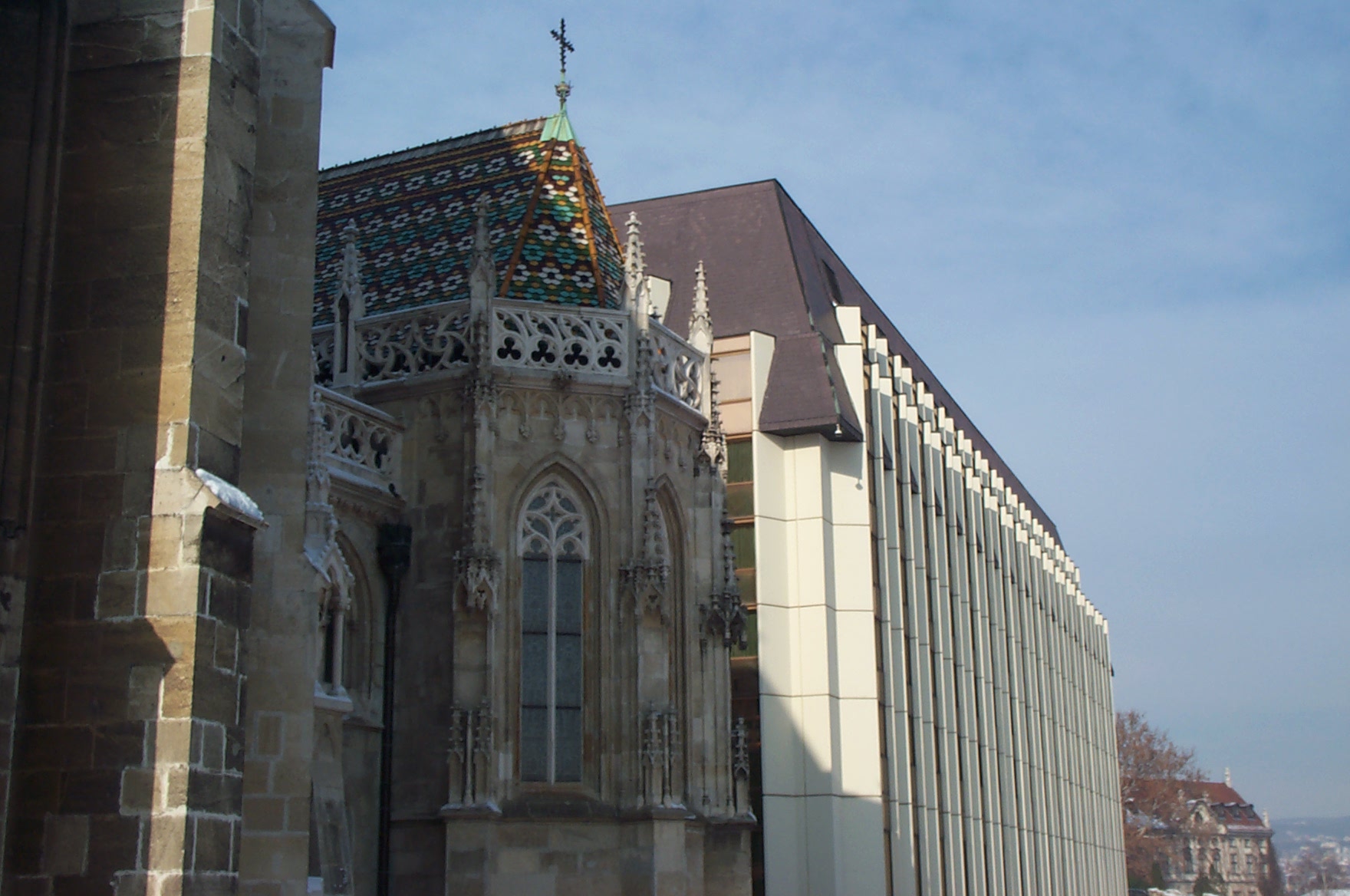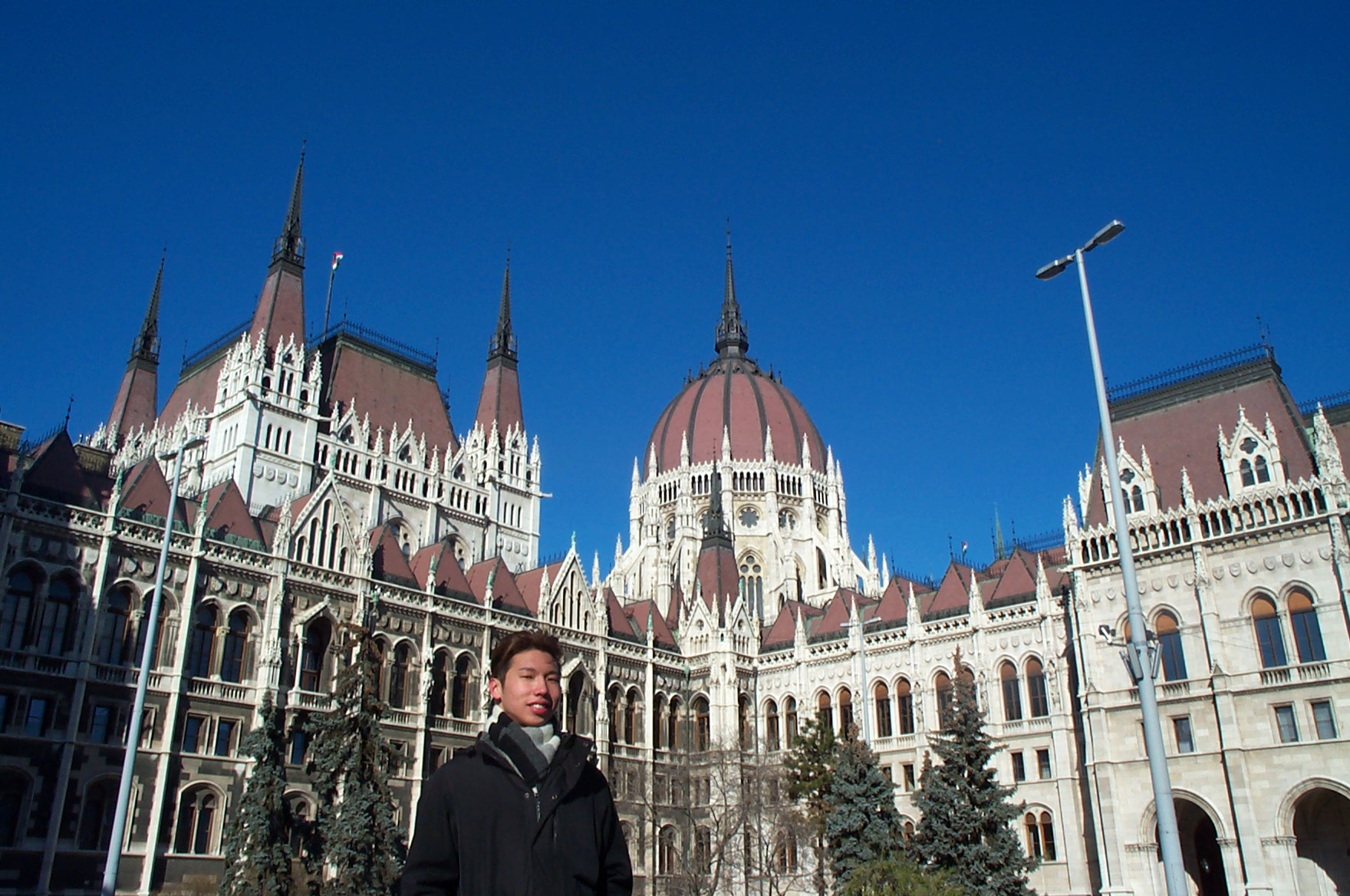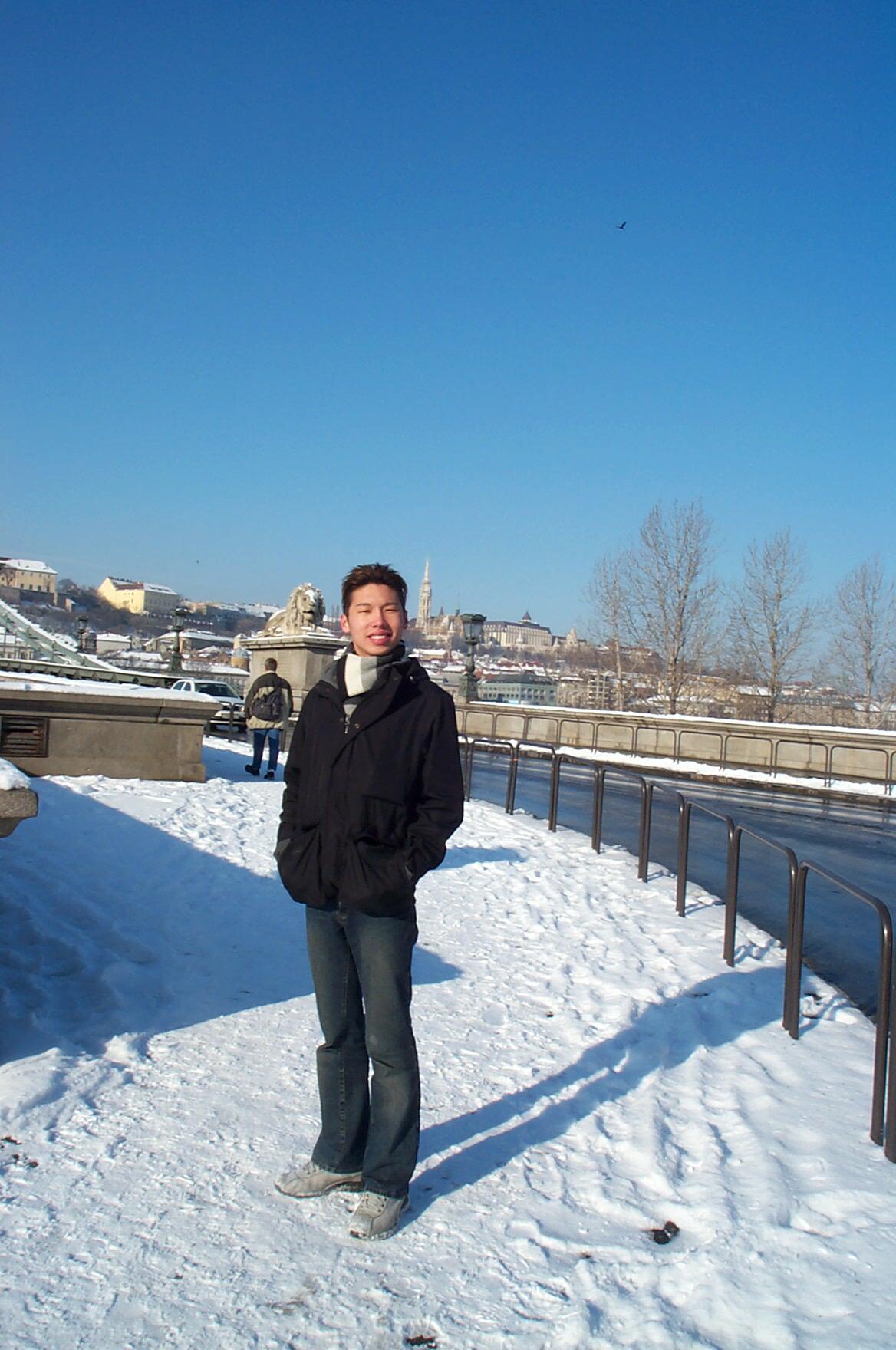 Als wir am 13. Feb. 2004 in Budapest landeten herrschte dichter Schneefall. So hatten wir uns das nicht gerade vorgestellt. Dafür wurden wir am nächsten Morgen mit stahlblauem Himmel und einer malerischen Schicht Puderzucker auf der ganzen Stadt berrascht. |