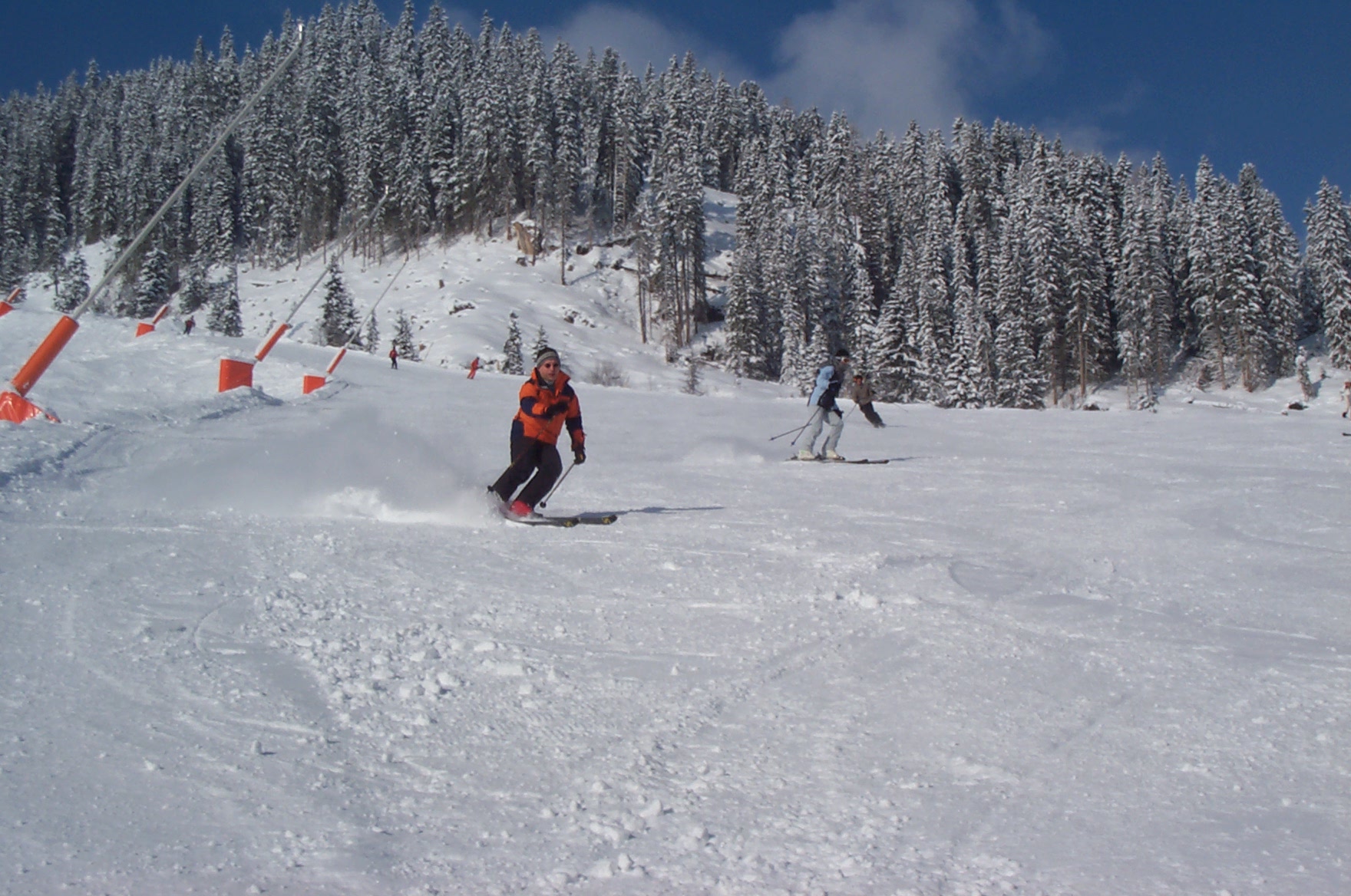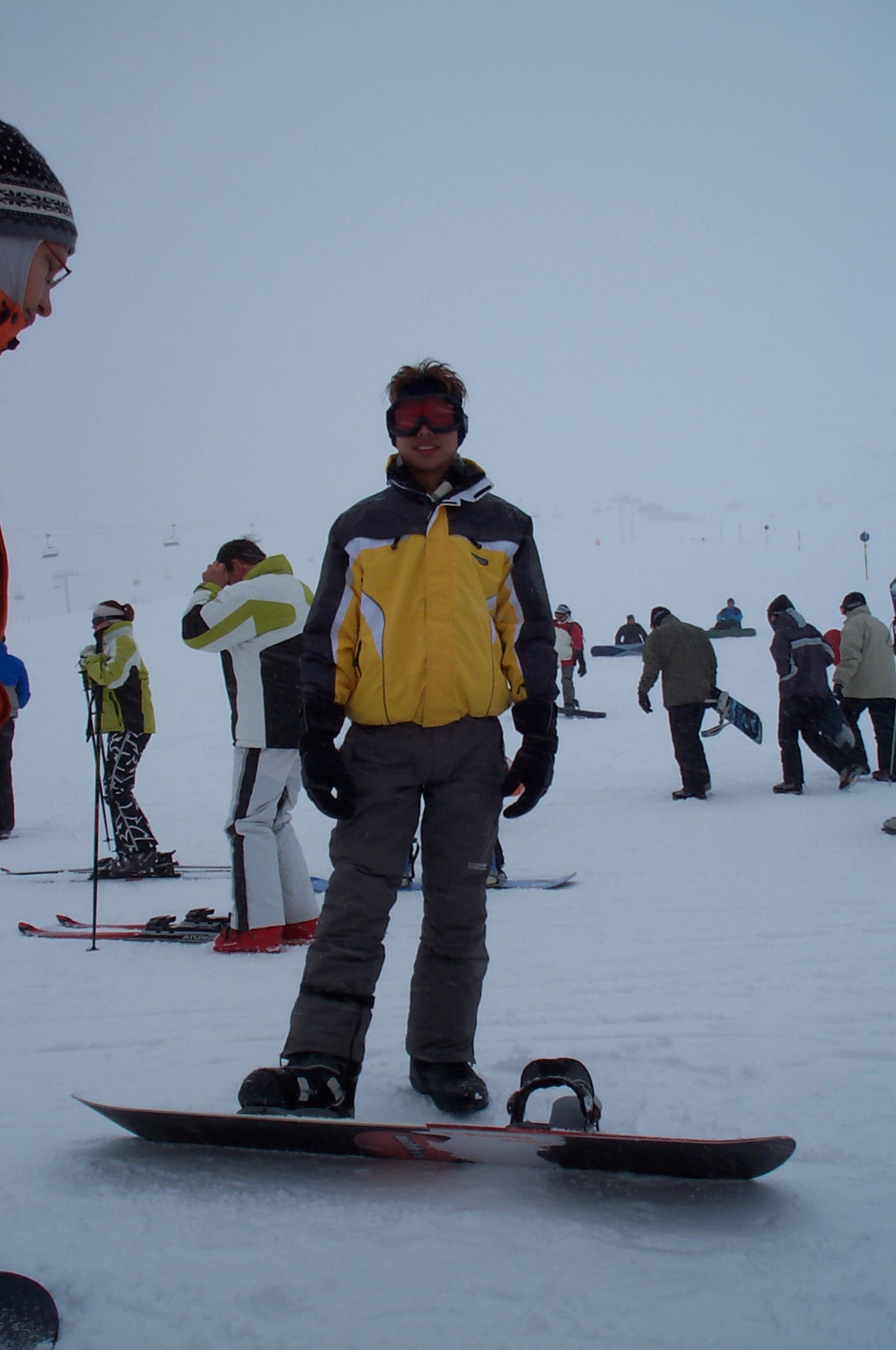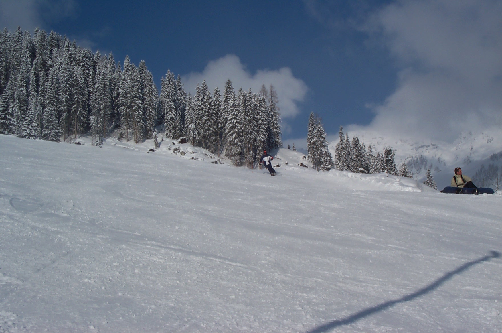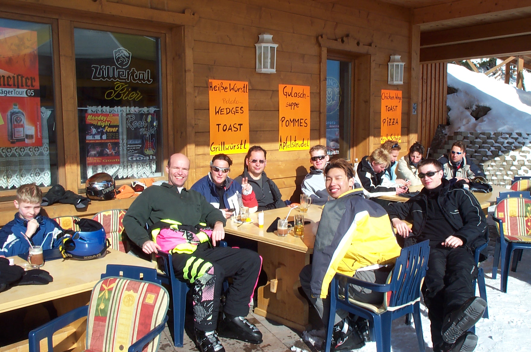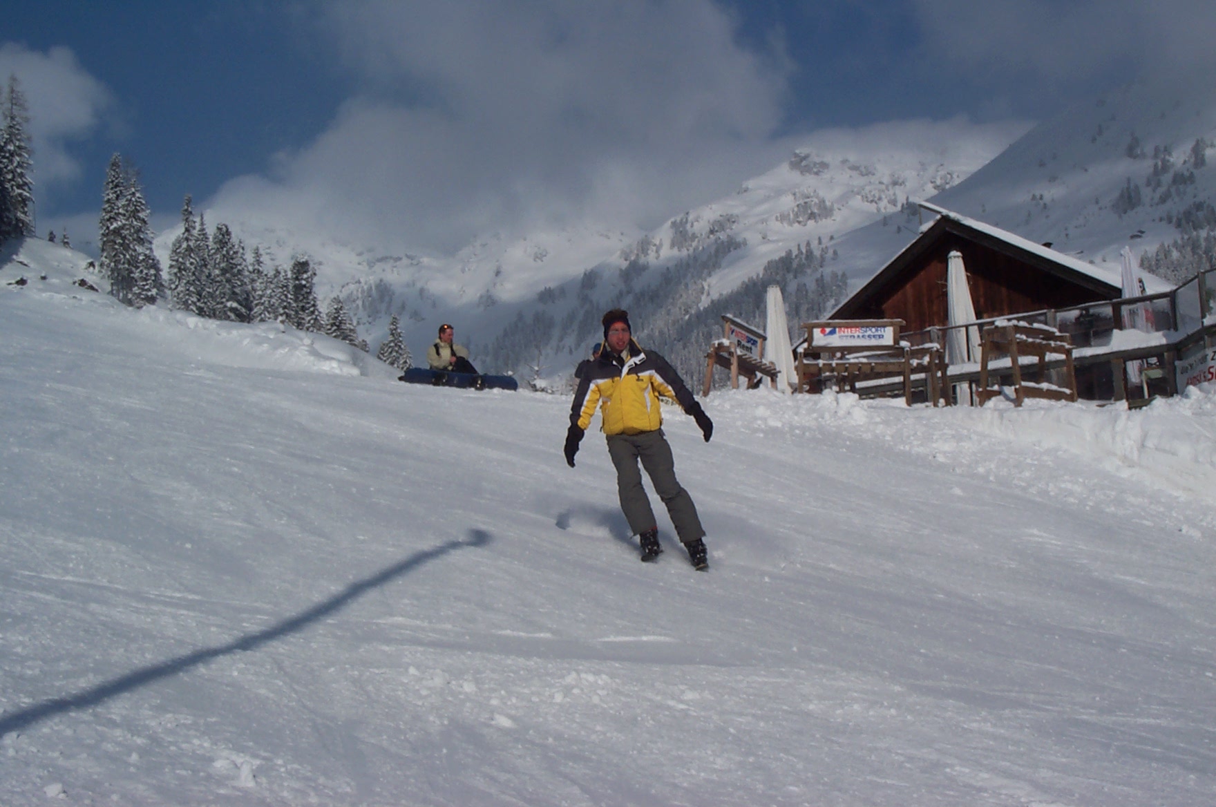 ![]() | Dieses Jahr zum ersten Mal auf'm Snowboard waren Donny und Stefan. Es ist schon erstaunlich, wir hatten bisher jedes Jahr einen anderen Bindungstyp... Standard? Was ist das? |