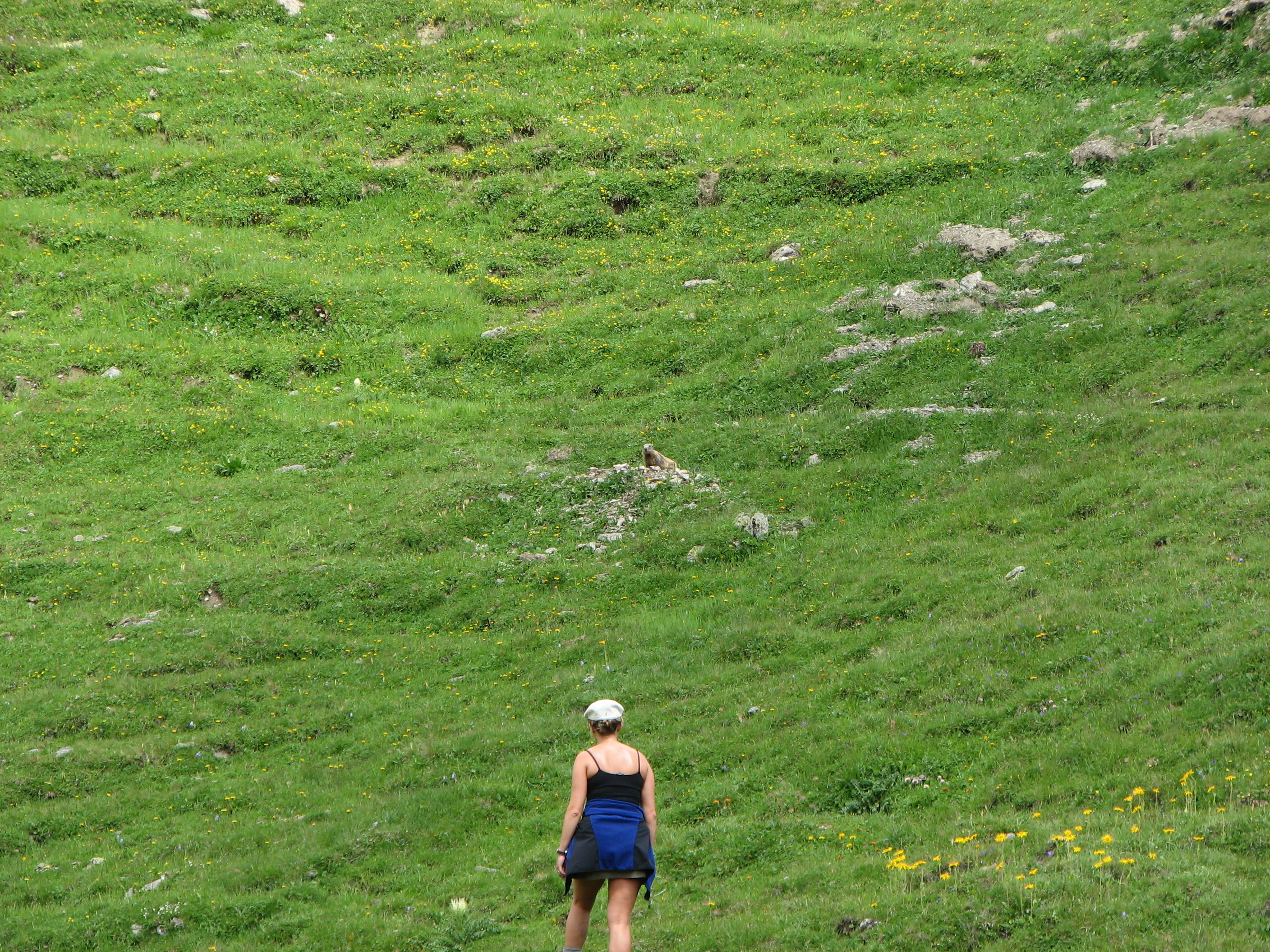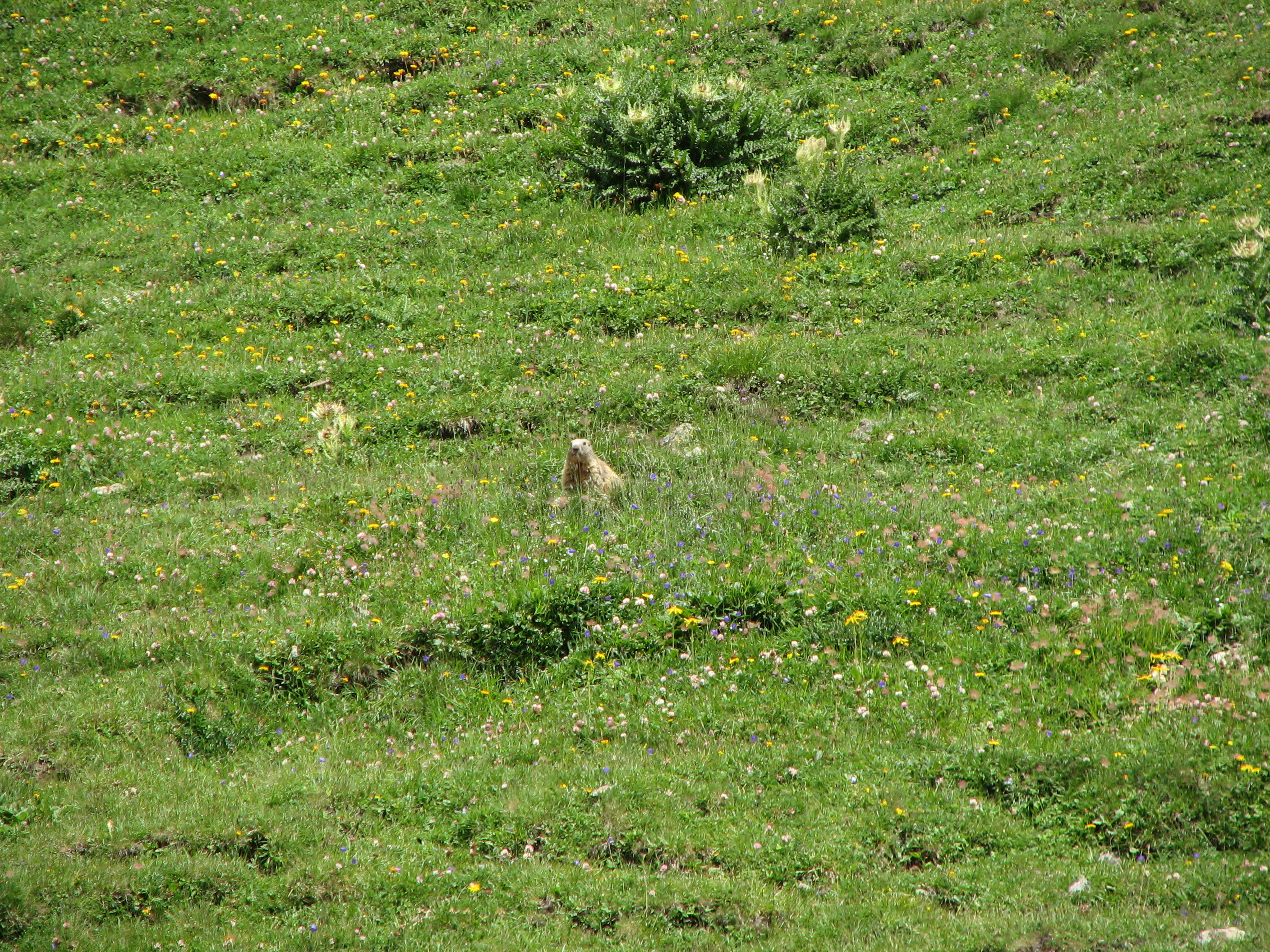Von blossem Auge kaum zu erkennen, kommen die Hirsche und das Murmeltier