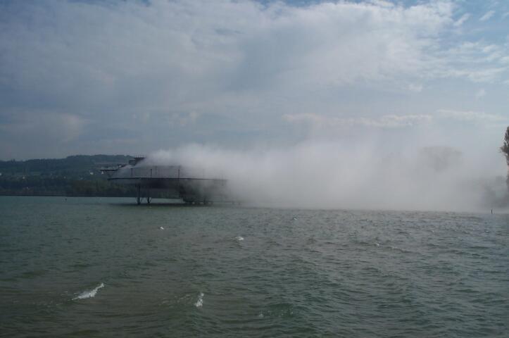 Rheumatiker. <g> Ideal wär natürlich ein Tag ohne Wind gewesen, doch wir haben einen Tag mit Ostwind erwischt: Die ganze Wolke wurde auf die Arteplage getrieben... |