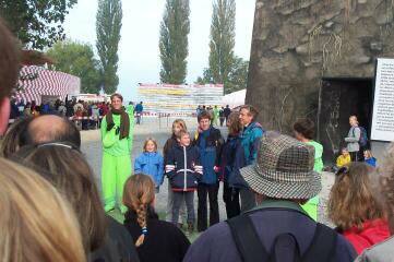 Frühlingswiese. Das weckt doch Erwartungen oder? Auch die Menschenschlange und prognostizierte 30 Minuten Wartezeit lassen einem wirklich gespannt sein, was da drin ist... Als Zückerchen dürfen mutige, die etwas Singen (so wie die Familie unten) auch die Warteschlange überspringen und direkt rein... Es muss sich also lohnen! | |
